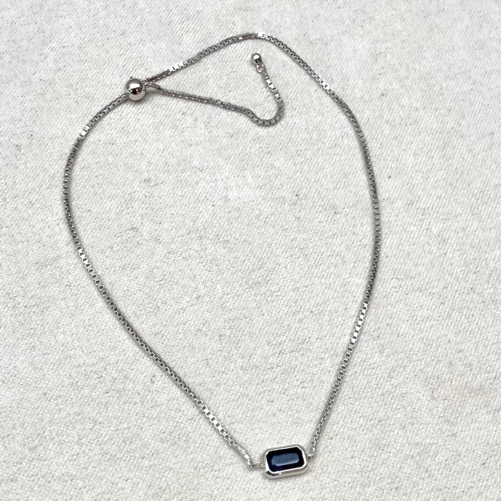 Sapphire Baguette Box Chain Sliding clasp Bracelet Sterling Silver Sample