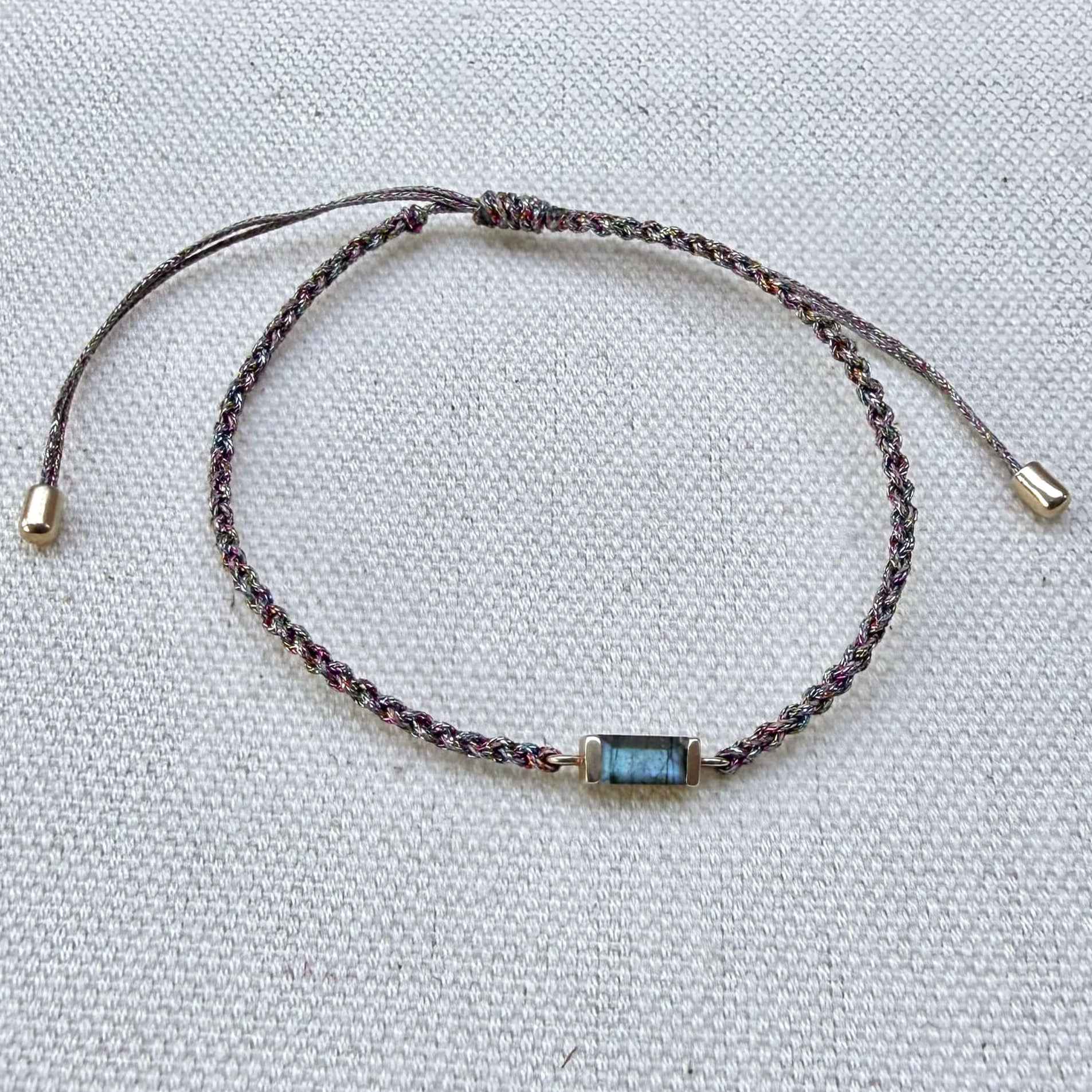 Labradorite Baguette Lurex Friendship Bracelet 9k Gold Sample