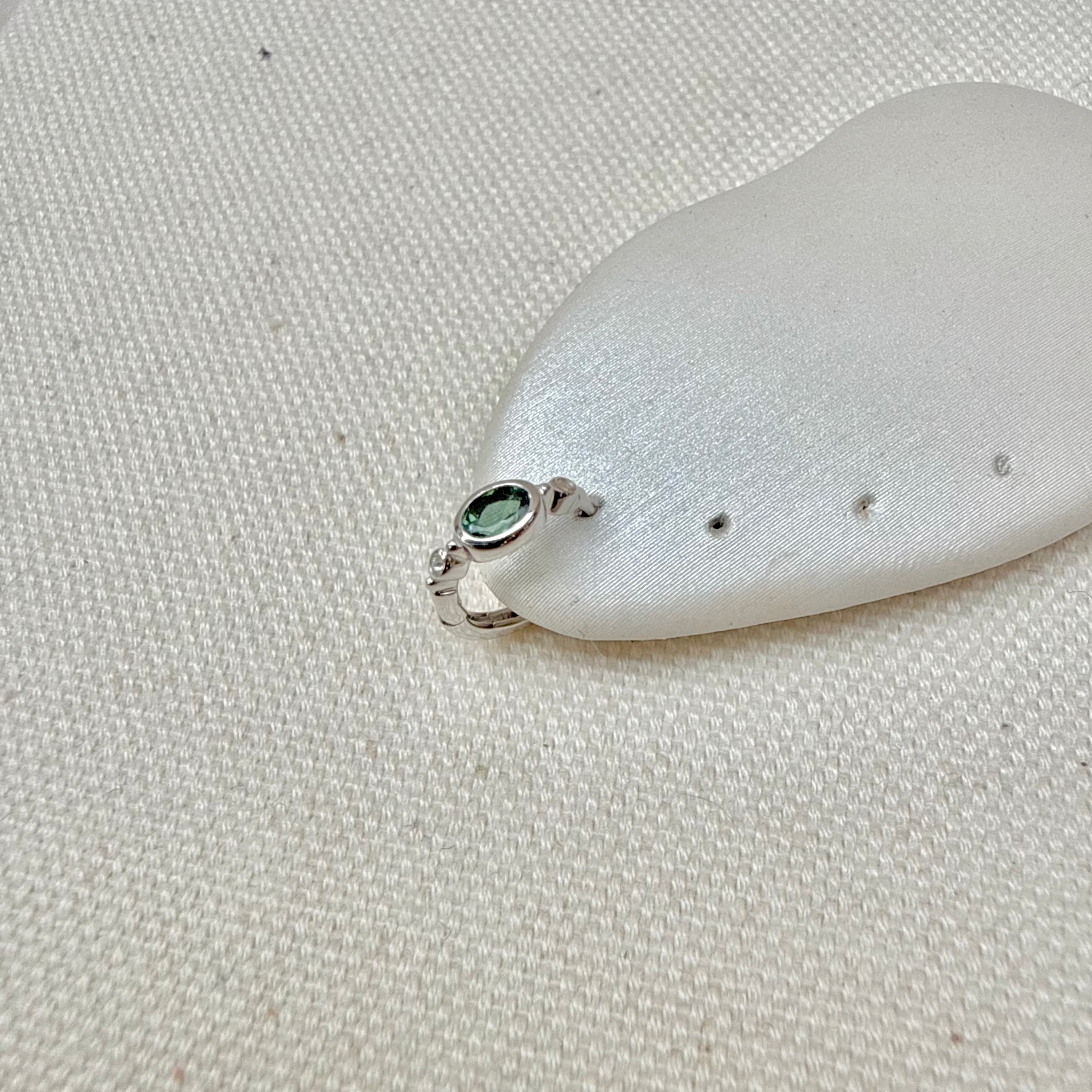 Green Tourmaline & White Sapphire Huggie Earring Sterling Silver Sample