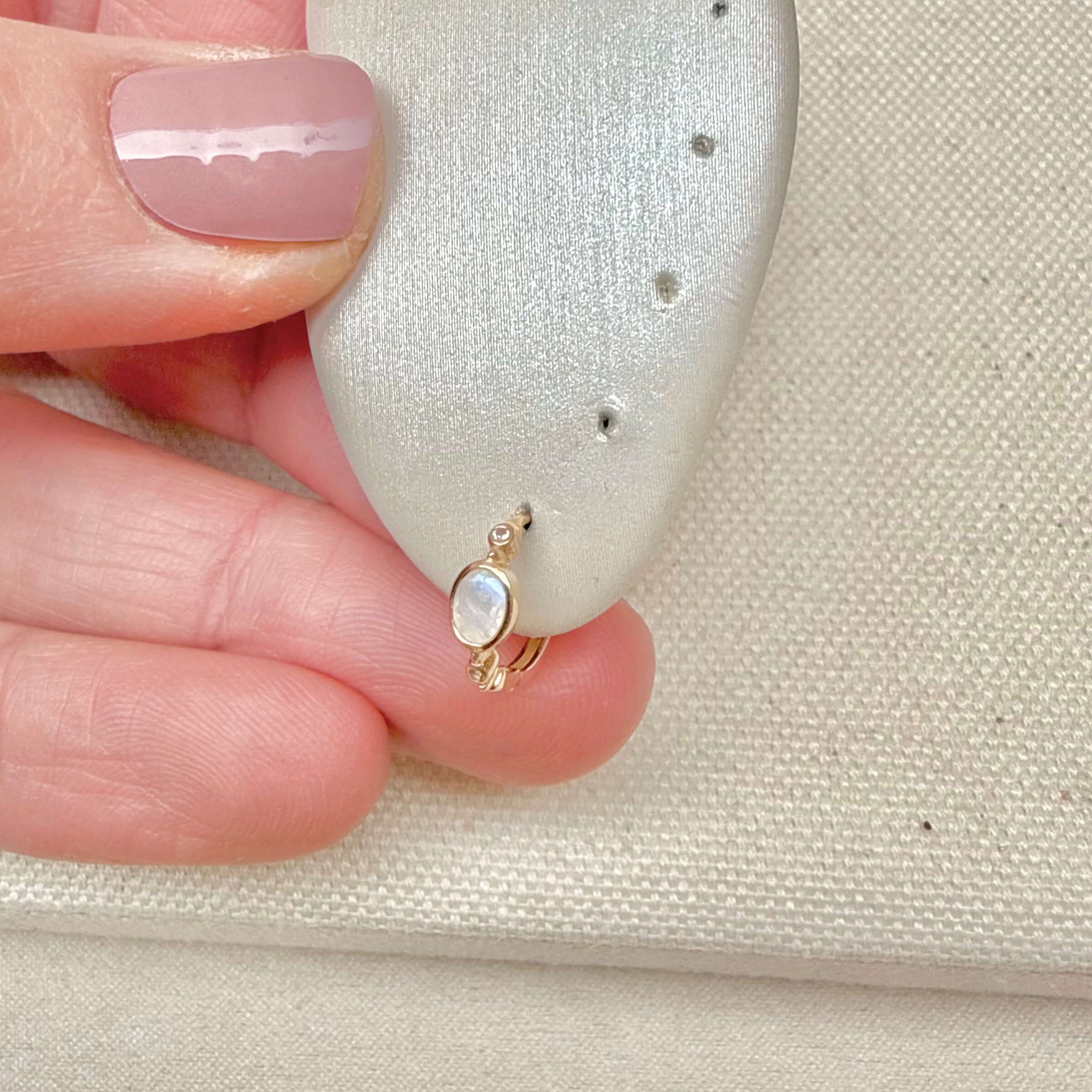 Moonstone & Sapphire Sunburst Flat Back Earring