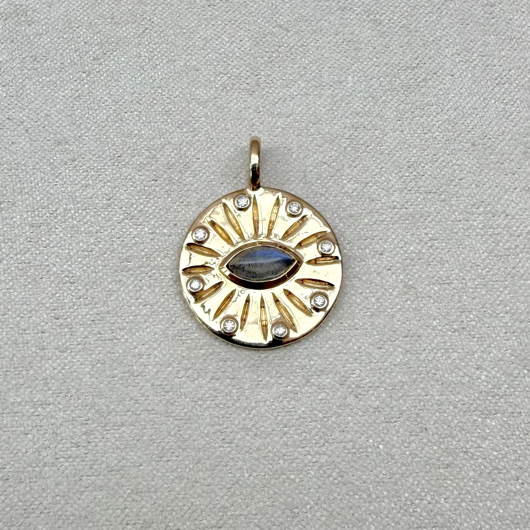 Labradorite & Diamond Eye Coin Pendant 9k Gold Sample