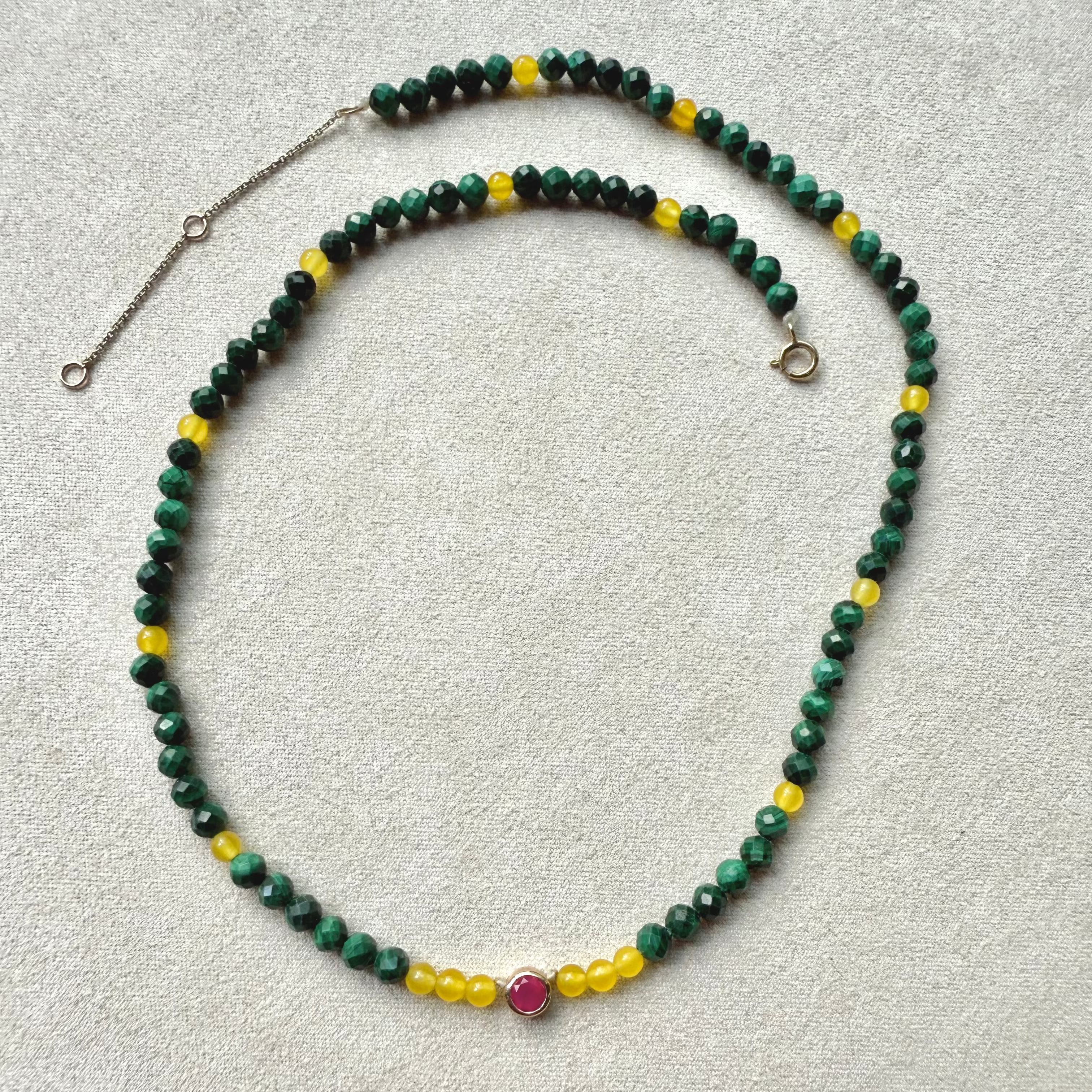 Malachite, Citrine & Pink Quartz Beaded Necklace 9k Gold Sample