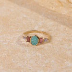 Oval Amazonite, Pink Tourmaline & Tanzanite Ring 9k Gold Size M Sample