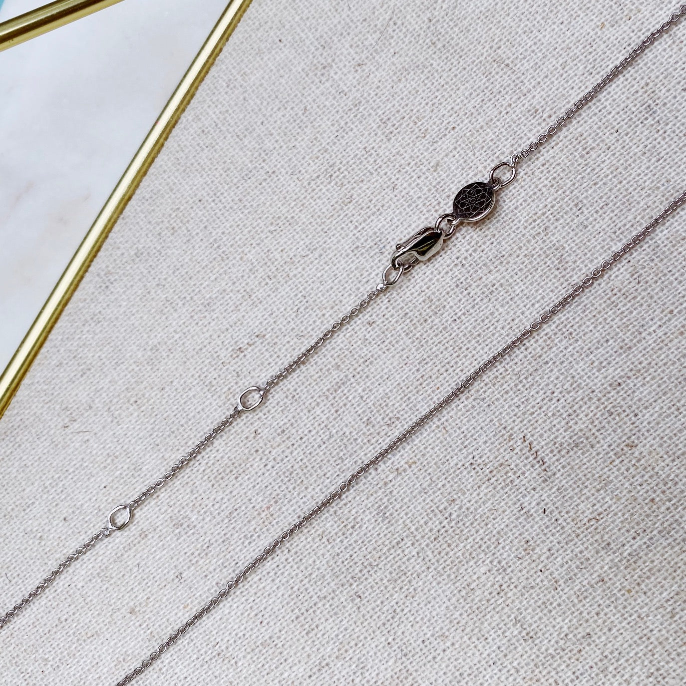 The Cable Chain has a 2” extender chain with 3 little rings so it can be worn at 16”, 17” and 18”.
