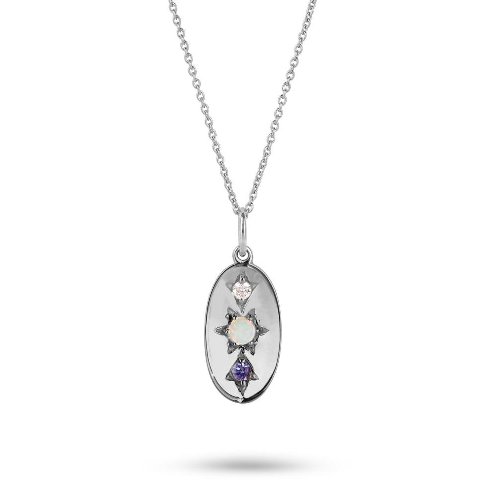 We adore the elegant domed surface of this sterling silver pendant, which effortlessly enhances any outfit. Make it really special by customising it with three gemstones of your choice, it will carry deep meaning forever.