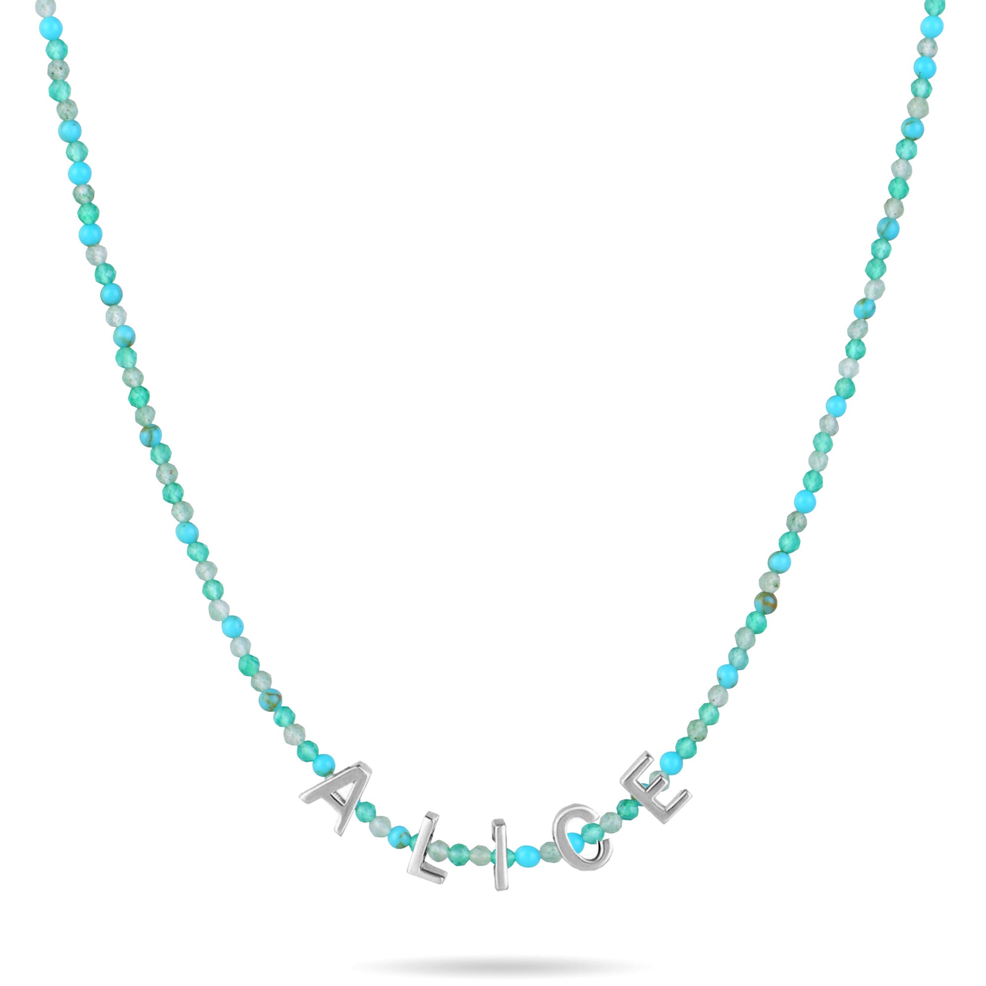 Craft a bespoke piece of jewellery that reflects your style. Pick from beautiful bead choices like malachite, labradorite, multi-stone, or multi turquoise, and customise it with up to eight handcrafted sterling silver letters. Whether it’s a name, initials, symbol, or inspiring word, create something personal to wear and treasure every day.