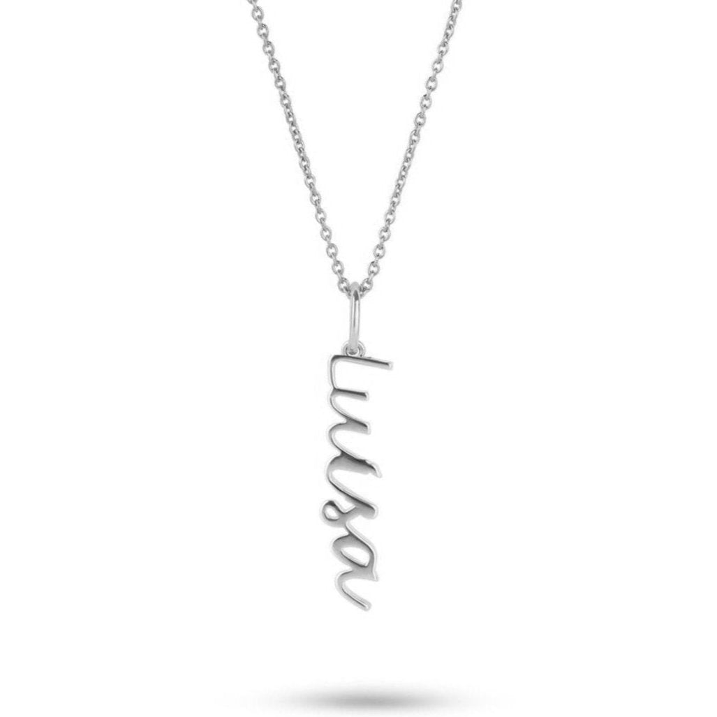 This solid sterling silver personalised pendant lets you choose any name or word, making it a unique and meaningful statement. Perfect for everyday wear or as a thoughtful gift. A blend of style and sentiment!