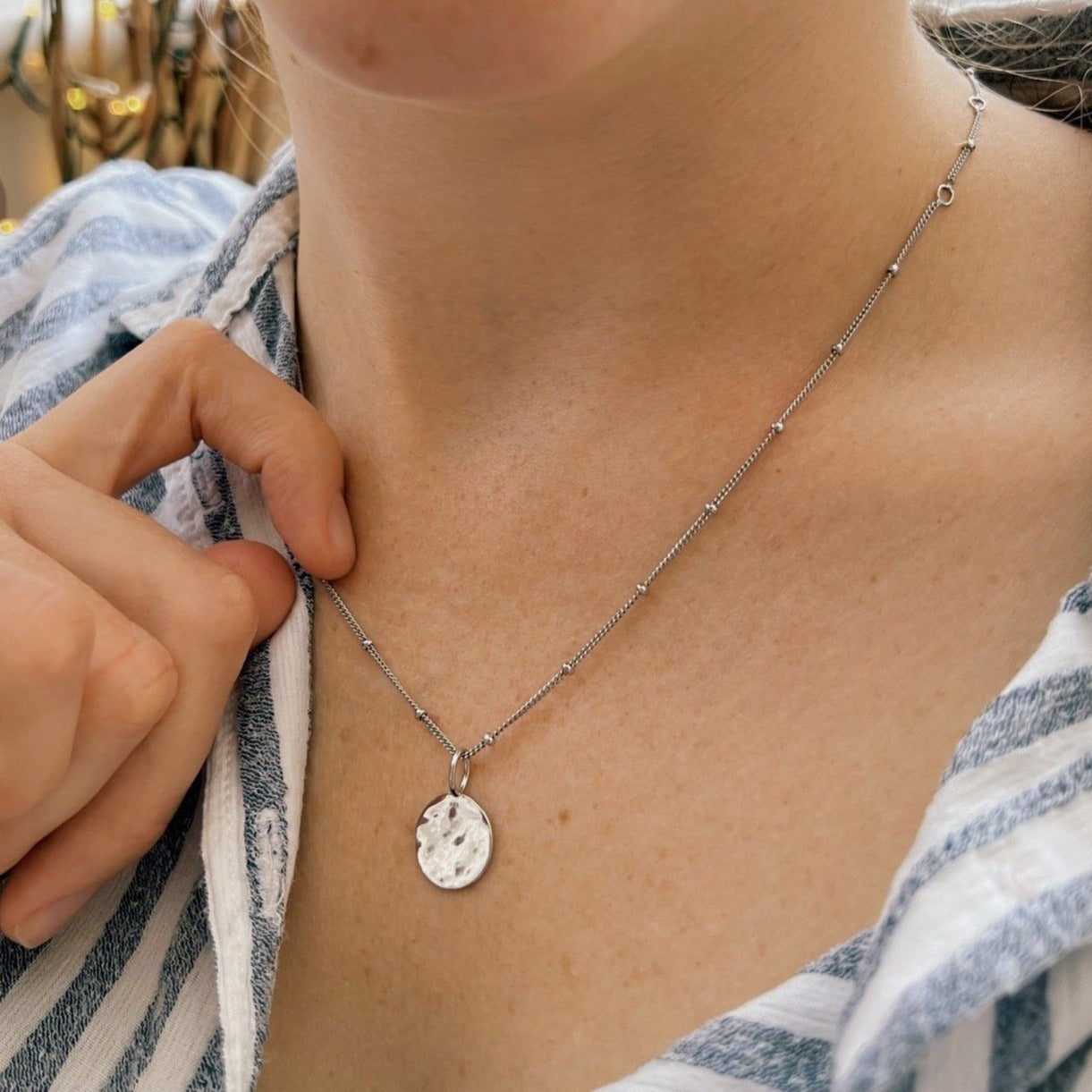 Organic Coin Pendant Sterling Silver