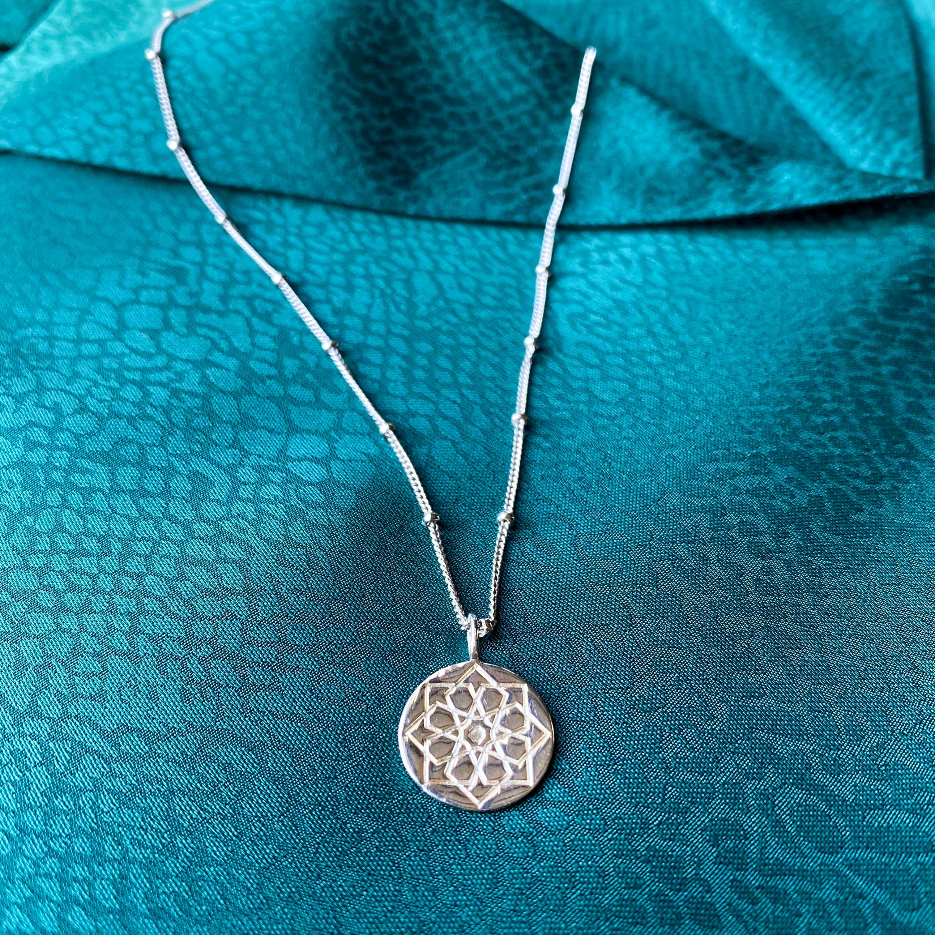 Our beautiful Zohreh V. icon is intricately engraved onto this sterling silver coin pendant. Inspired by ancient Persian symbols, our logo is a distinctive and unique representation of our brand.