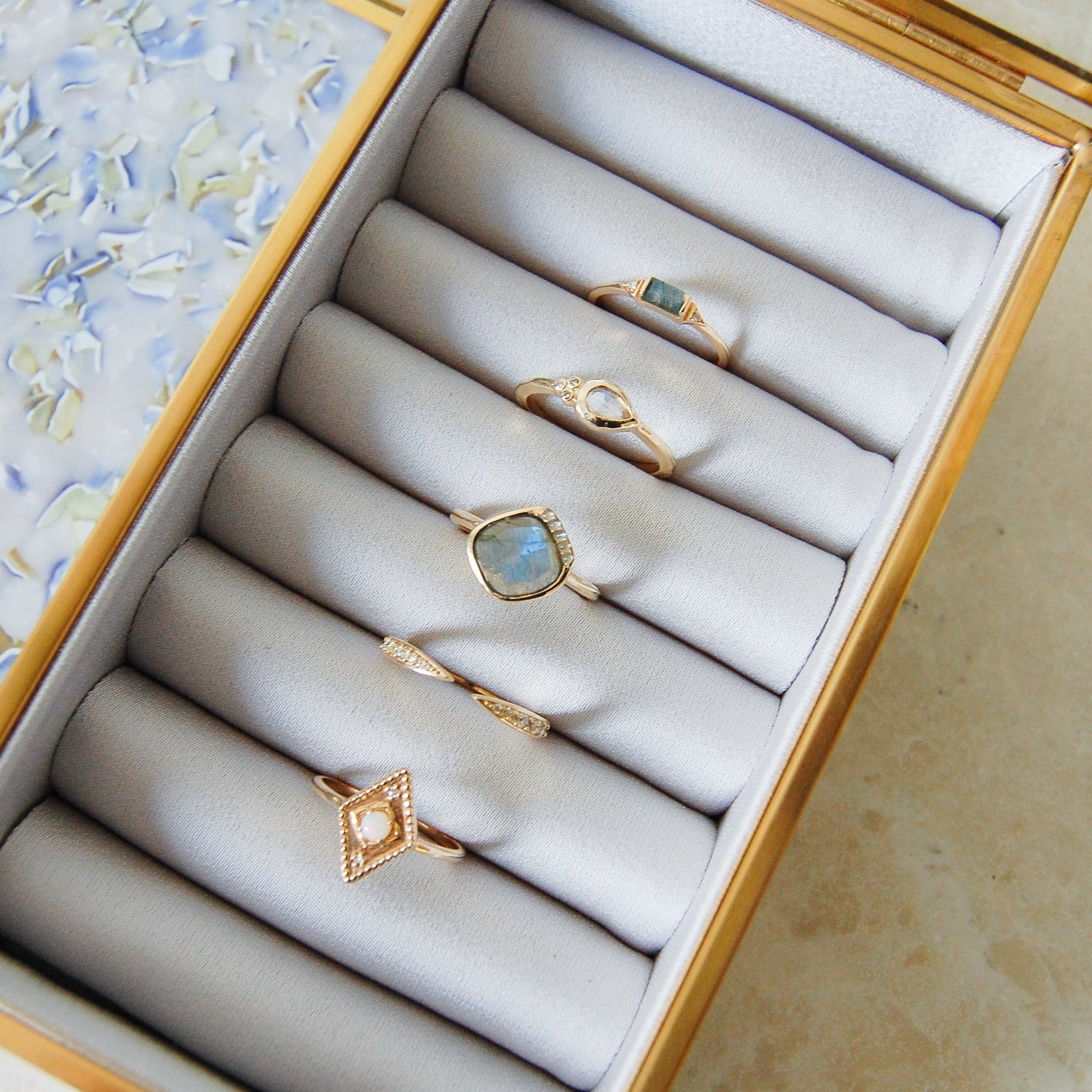 This ring is absolutely beautiful! I love the shape and the smaller stones lining the edge. I’ve been wearing it all week and can’t stop looking at it!!