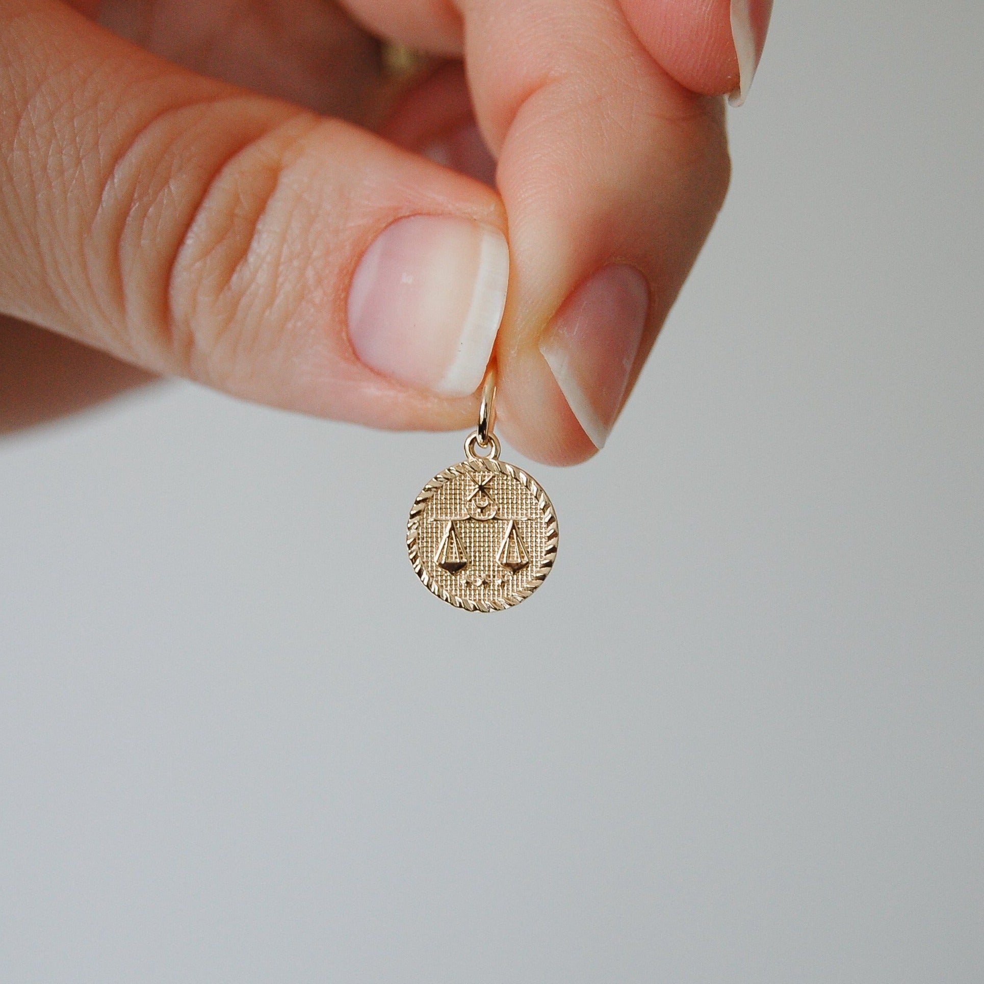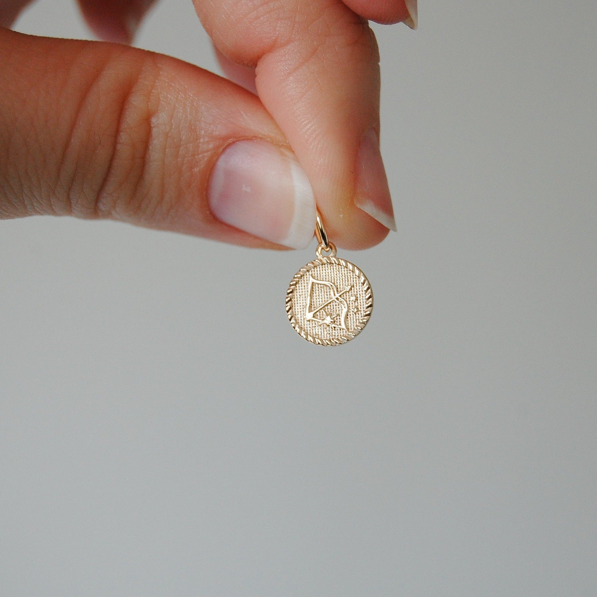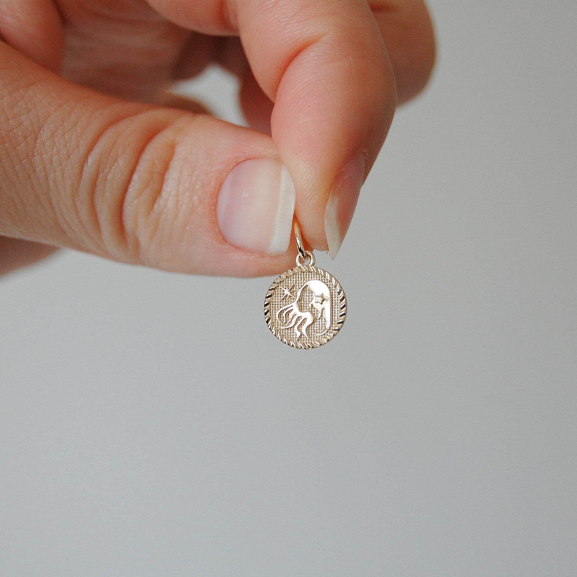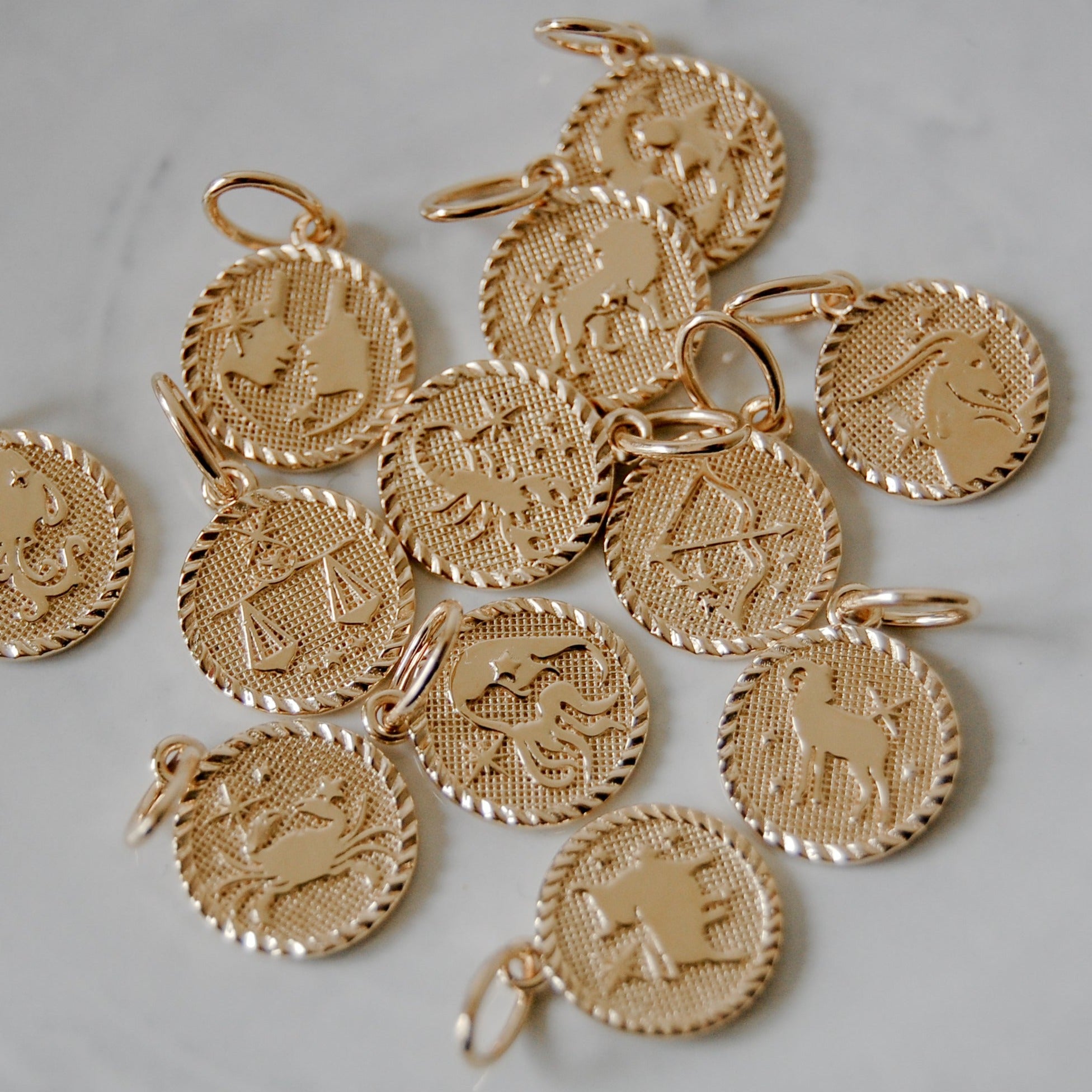 The Zodiac Coin Pendant measures 10mm in diameter. The bale measures 4mm x 3mm internally.