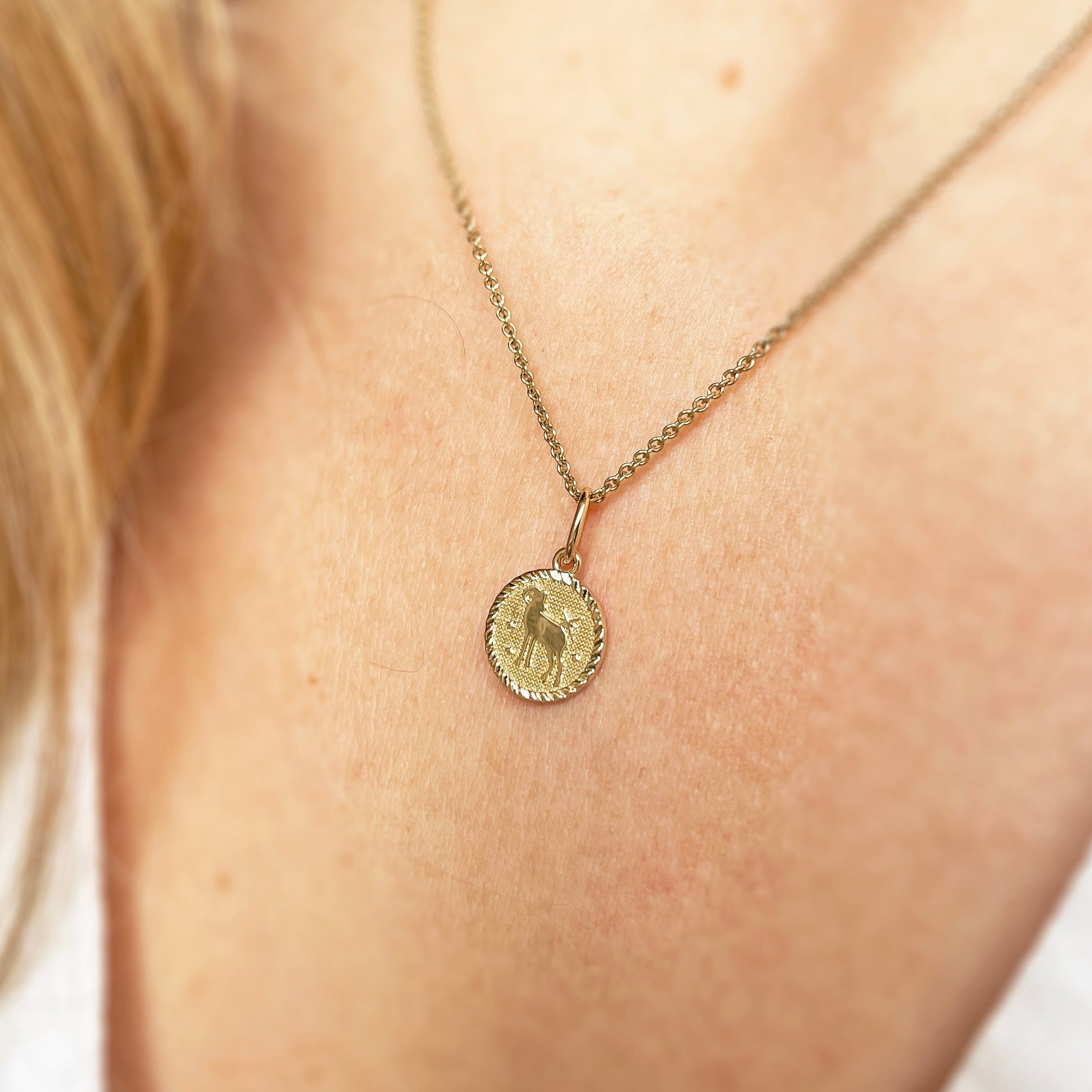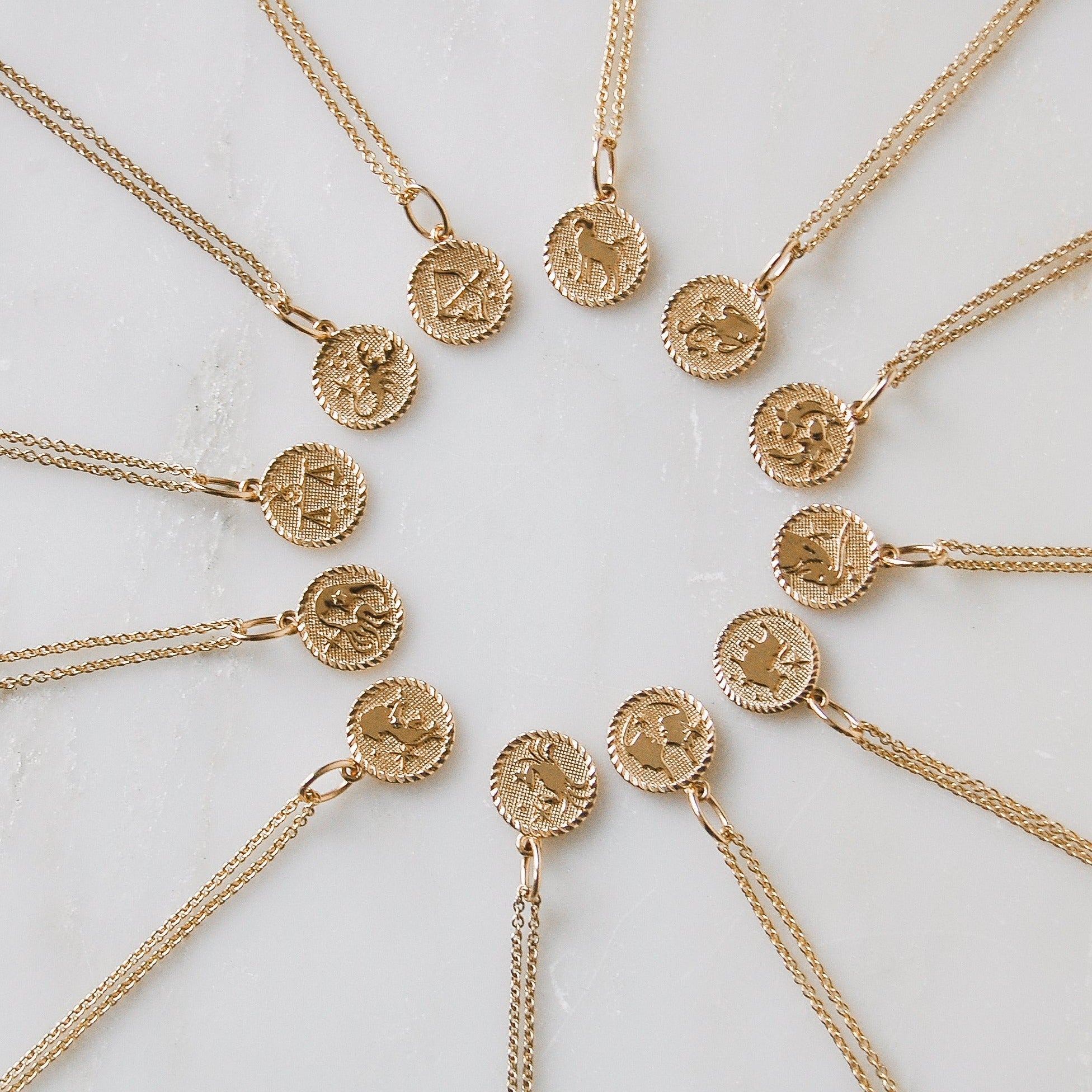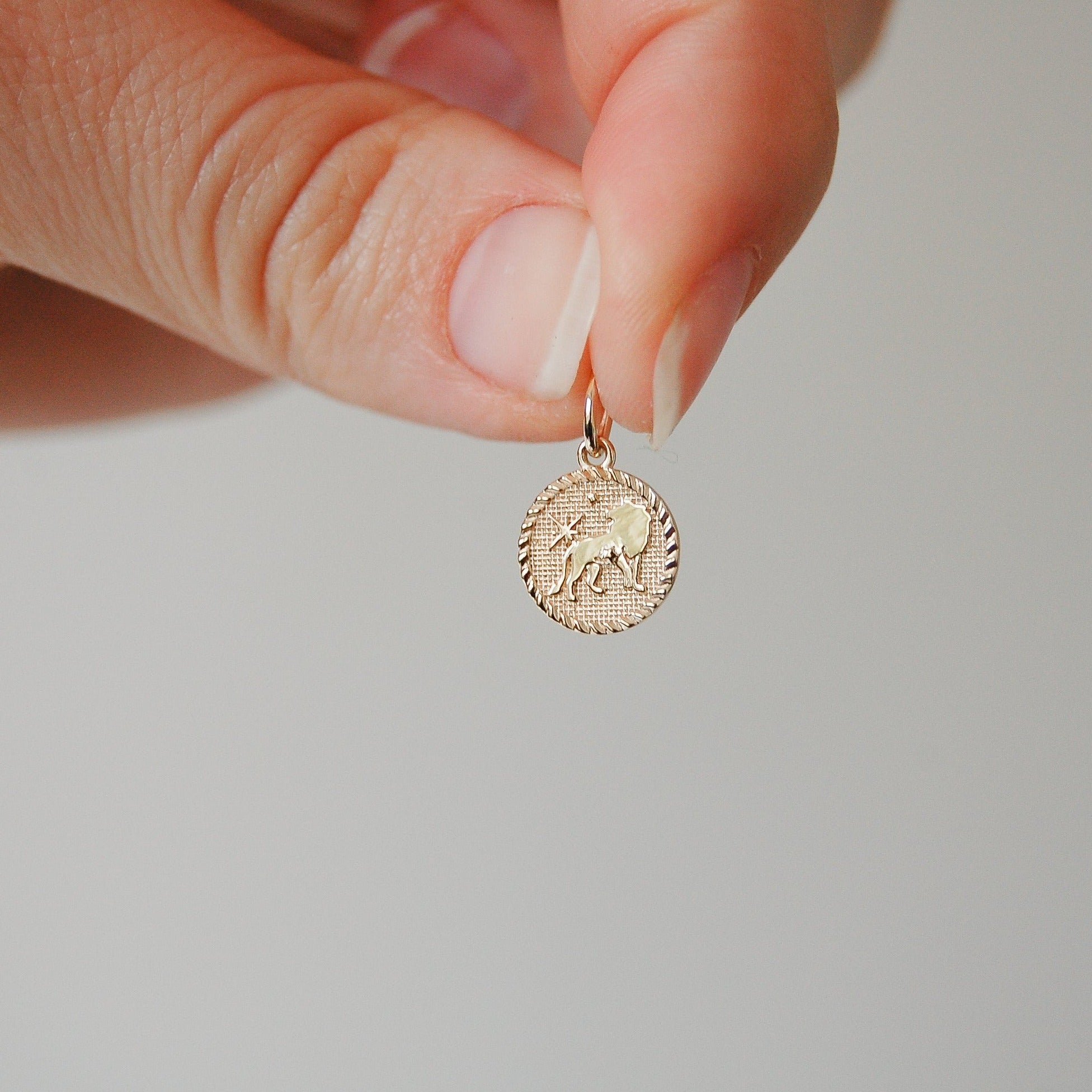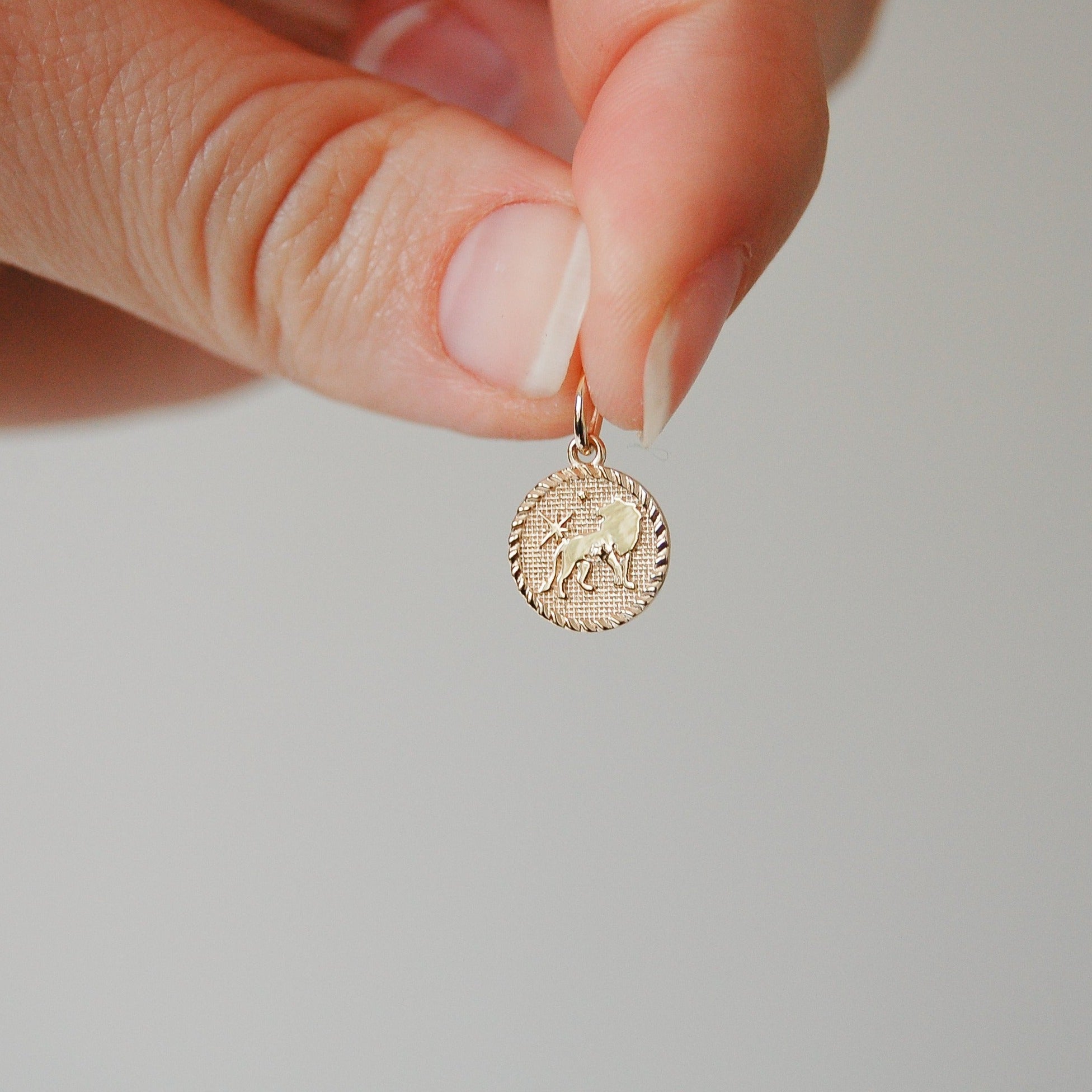 The Zodiac Coin Pendant measures 10mm in diameter. The bale measures 4mm x 3mm internally.