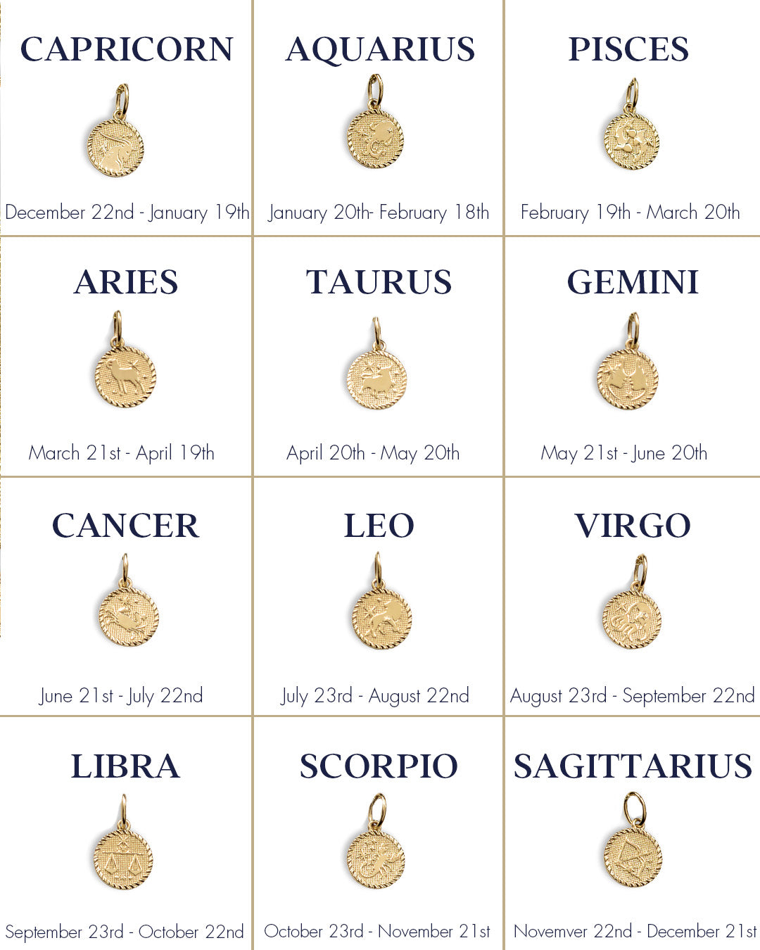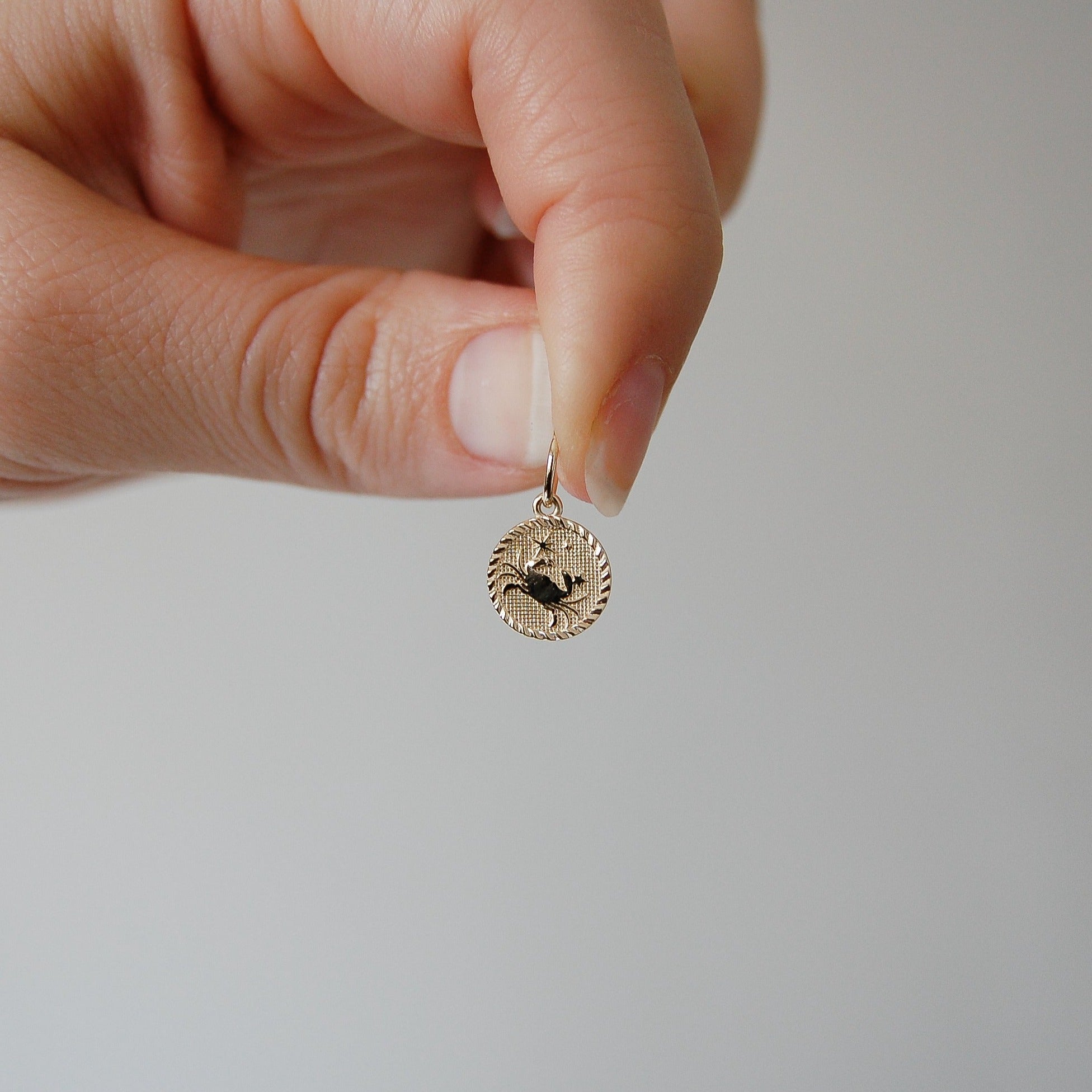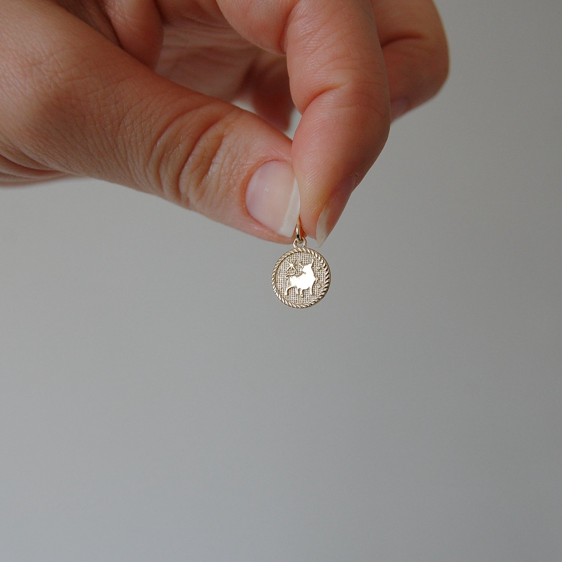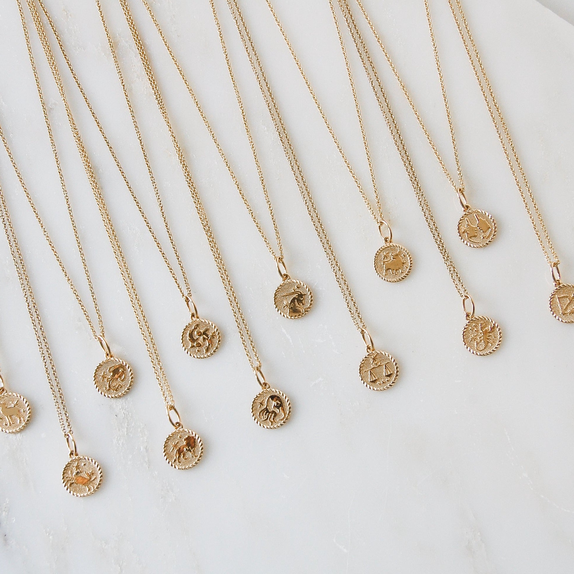 The Zodiac Coin Pendant measures 10mm in diameter. The bale measures 4mm x 3mm internally.