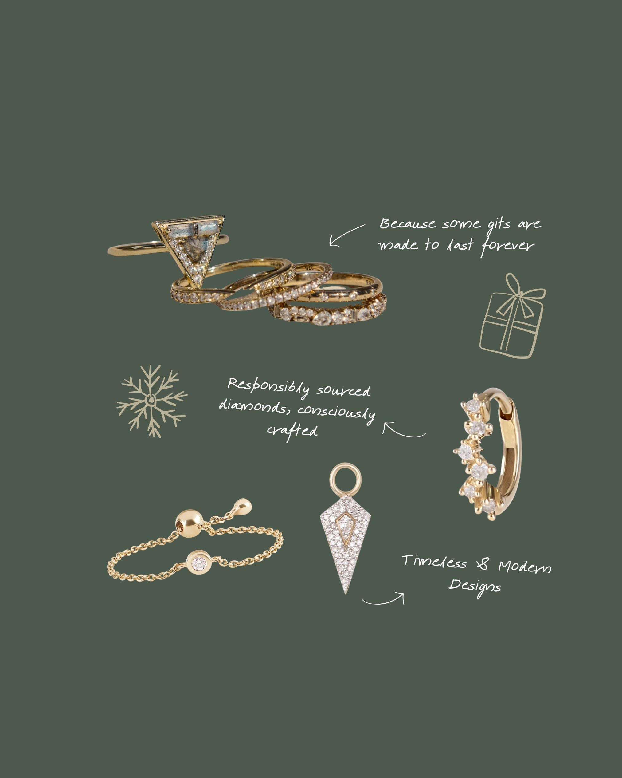 Crafted in recycled gold and set with ethically sourced stones, our diamond designs are thoughtful, sustainable and endlessly wearable, the perfect way to celebrate someone special.