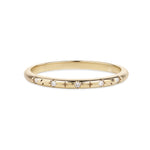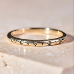 This ring is super versatile, the perfect stacker and forever ring. Featuring delicate engraved stars alternated with five sparkling white diamonds.