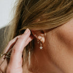Add a touch of celestial elegance to your look with these stunning diamond star hoops. Crafted in solid 9k yellow gold, these timeless pieces are perfect for everyday wear. Ethically sourced and beautifully made.