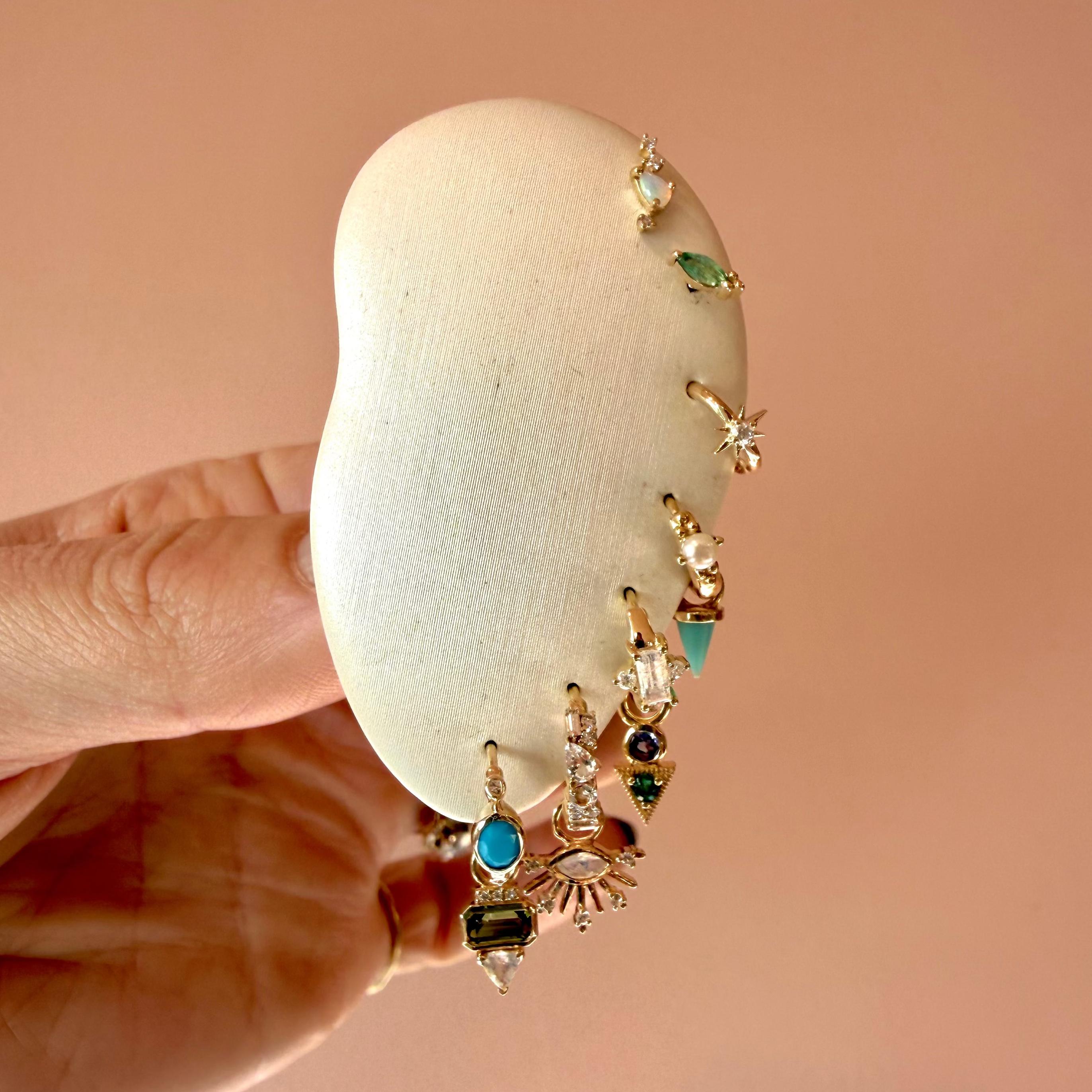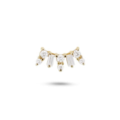 The Scattered Huggie Hoop measures 11.7mm outside edge to outside edge including the stone section, with a mm internal diameter. The hoop width is 1.5mm and 2.5mm at the widest part of the stone. The post width is 0.7mm.