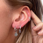 The must have Huggies made in solid sterling silver. This Huggie Hoops are really comfortable to wear and has an easy hinge construction so no hassle to put on either.