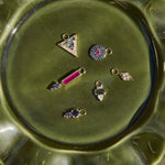 The charm measures 5mm in width at the widest point, 13mm in height including the ring. The ring is 2.5mm internal