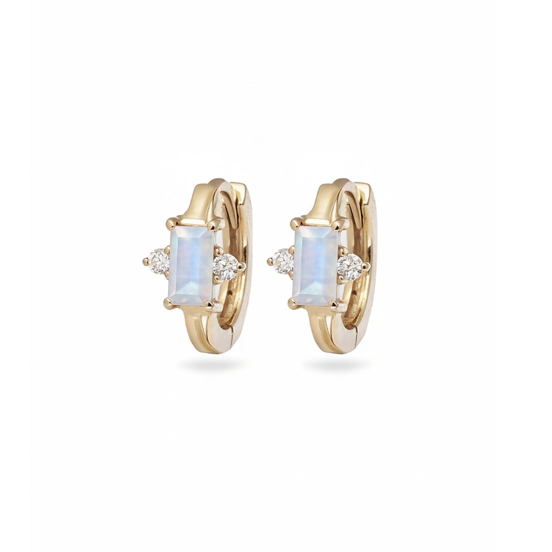 Moonstone & Diamond Huggie Hoop Earring 9k Gold