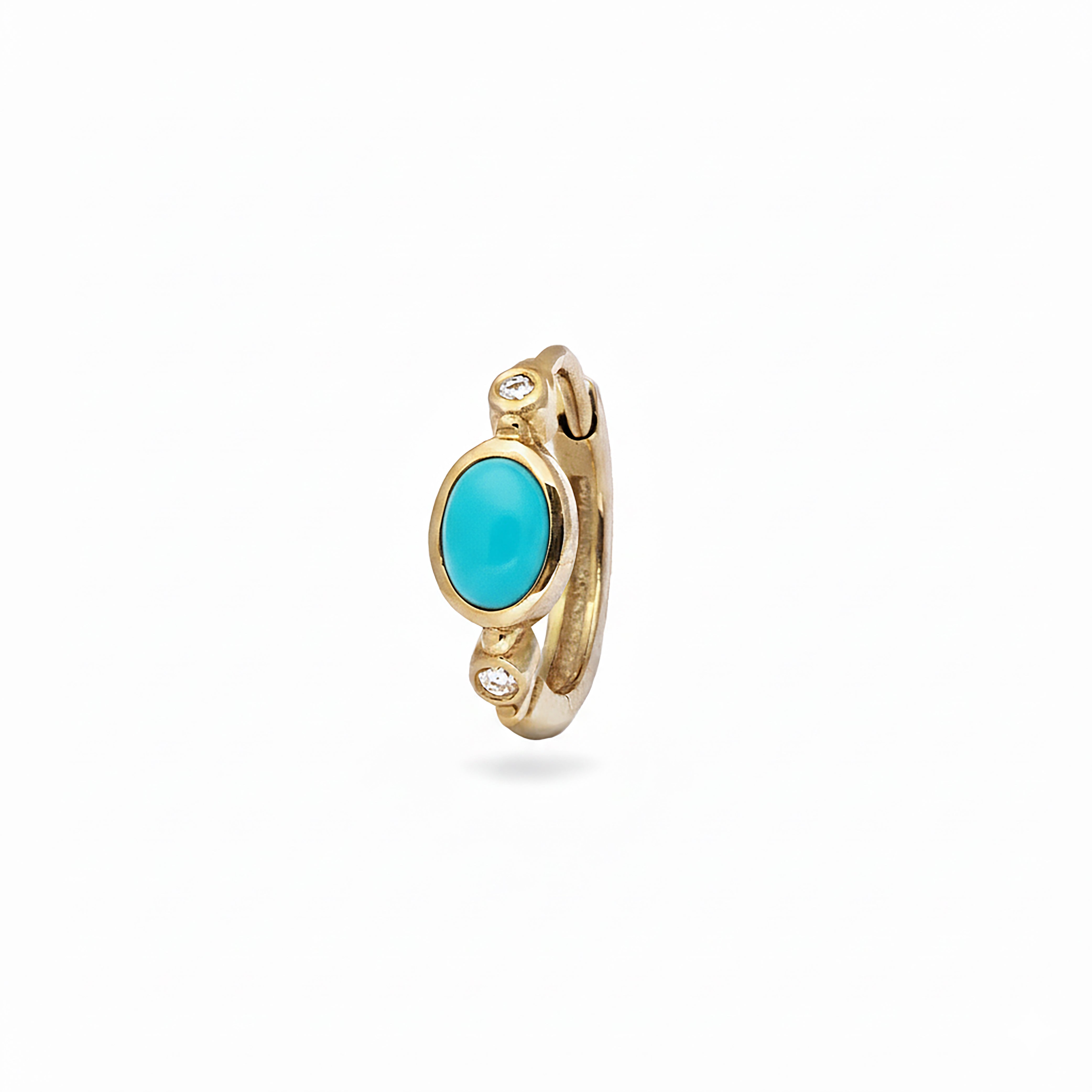 Turquoise & White Sapphire Huggie Hoop Earring 9k Gold